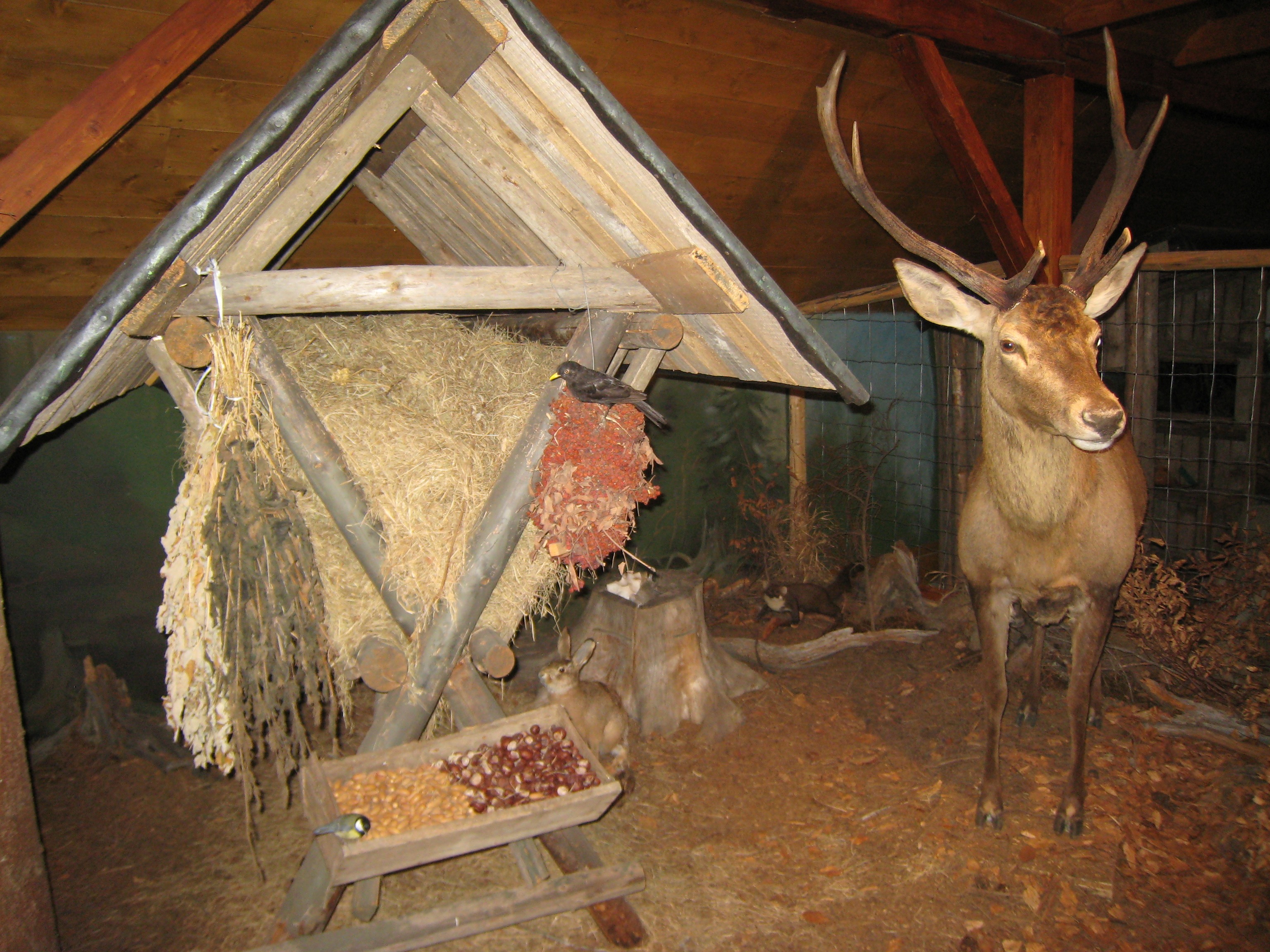 Największą atrakcją, zwłaszcza dla dzieci, jest zagroda zimowa. Przy paśniku zgromadziło się tu kilka leśnych zwierząt, jakby właśnie zostały zaskoczone podczas dokarmiania. W ekspozycji wyświetlane są krótkie filmy i pokazywane są ujęcia karkonoskich lasów i górskich grzbietów.
