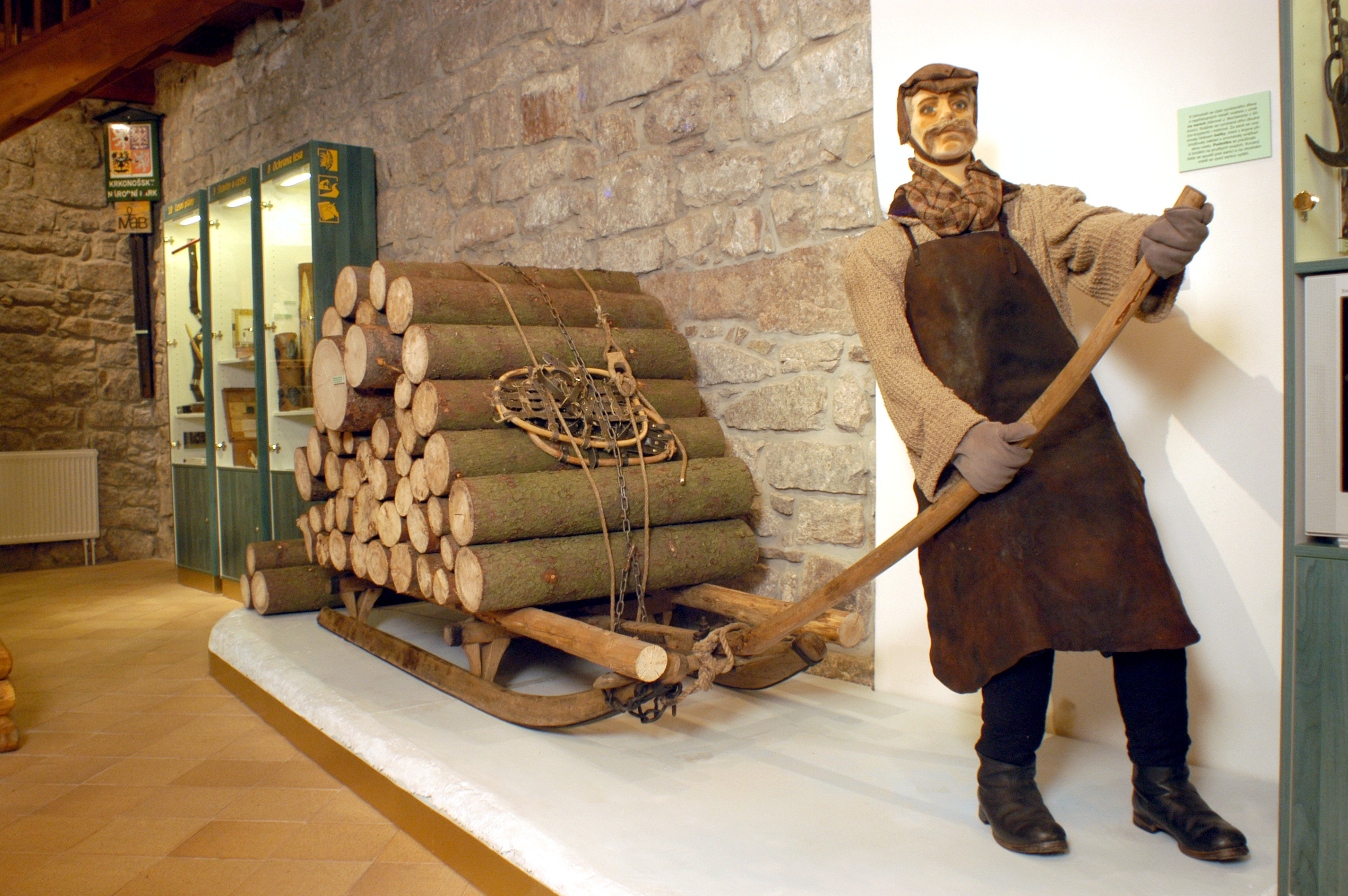 Część leśna wystawy pokazuje, jak w górach pozyskiwano drewno, jak zwożono pnie z lasu i na czym polega troska o las od sadzenia aż po jego odnowę. Ekspozycja myśliwska przybliża tradycje, psy myśliwskie, broń oraz rolę łowiectwa w codziennym życiu.