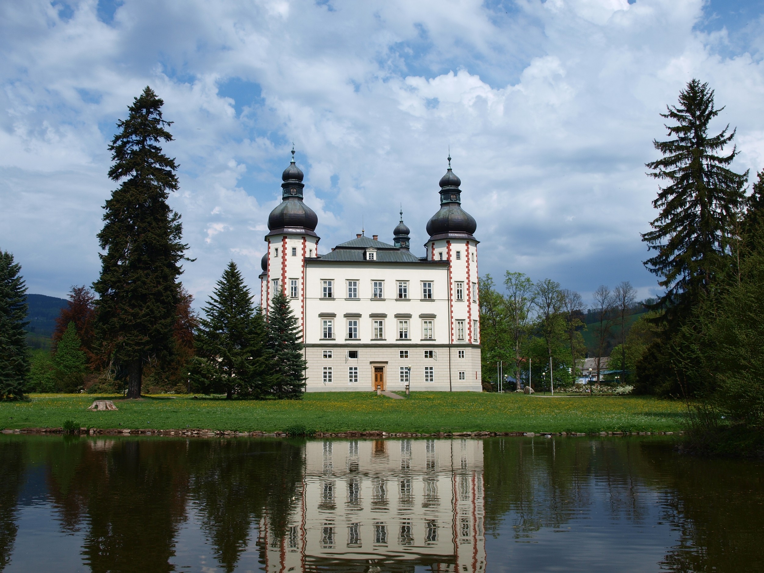 Na przestrzeni wieków zamek przeszedł kilka przebudów, fosa została zasypana, a w jej miejscu powstał rozległy park zamkowy. Obecny wygląd parku pochodzi z projektu ogrodnika Fuchsa. Park uzupełnia zamkowa kaplica Černínów-Morzinów z lat 1887–1891, pod którą znajduje się grobowiec rodowy.